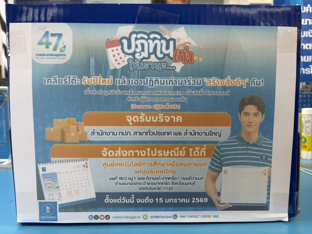 วันศุกร์ที่ ๙ มกราคม ๒๕๖๙ สำนักตรวจเงินแผ่นดินจังหวัดเชียงราย โดยนางสาวสิรภัทร โปทาดี ผู้อำนวยการสำนักตรวจเงินแผ่นดินจังหวัดเชียงราย พร้อมด้วยข้าราชการในสังกัด นำปฏิทินตั้งโต๊ะเก่าที่รวบรวมได้ ส่งมอบให้สำนักงาน กปภ. สาขาเชียงราย ตามกิจกรรมปฏิทินเก่าให้เรานะ…เพื่อส่งต่อมูลนิธิช่วยเหลือคนตาบอดแห่งประเทศไทยใช้ผลิตสื่ออักษรเบรลล์สำหรับผู้พิการทางการมองเห็นต่อไป