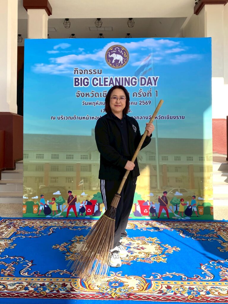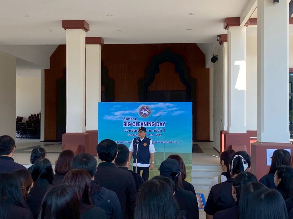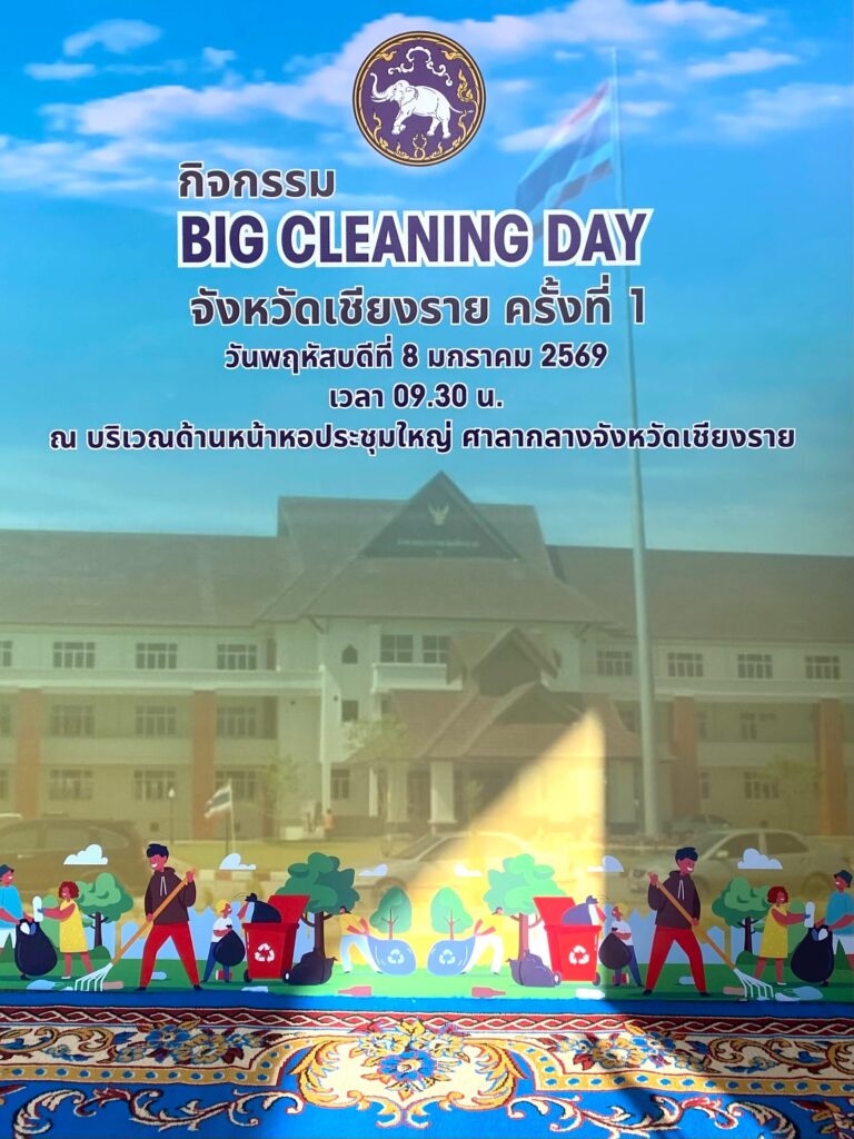 วันพฤหัสบดีที่ ๘ มกราคม ๒๕๖๙ สำนักตรวจเงินแผ่นดินจังหวัดเชียงราย โดยนางสาวสิรภัทร โปทาดี ผู้อำนวยการสำนักตรวจเงินแผ่นดินจังหวัดเชียงราย พร้อมด้วยข้าราชการในสังกัด เข้าร่วมกิจกรรม Big Cleaning Day จังหวัดเชียงราย ครั้งที่ ๑ ณ บริเวณด้านหน้าหอประชุมใหญ่ ศาลากลางจังหวัดเชียงราย